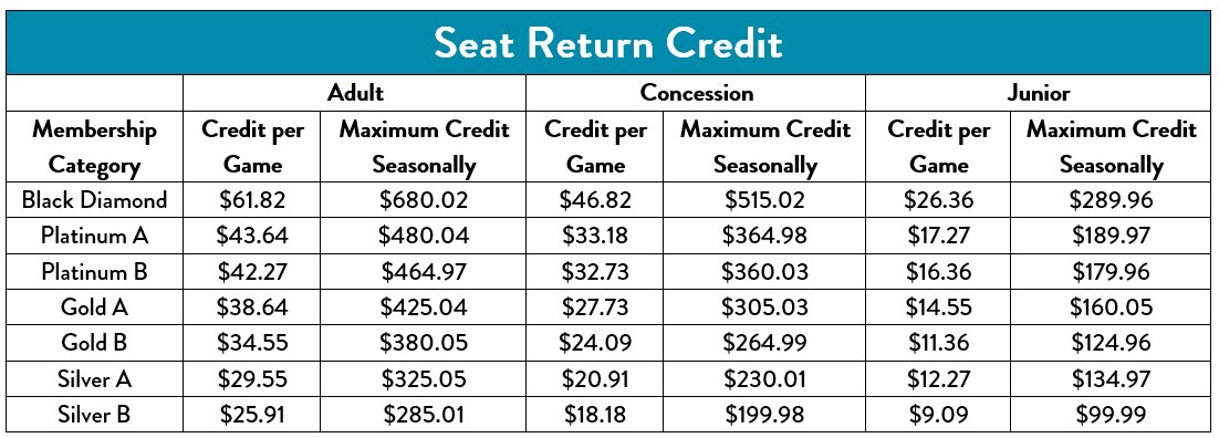 Your credit will be applied to your 2027 membership renewal automatically if your seat is sold for any game you return your seat for.